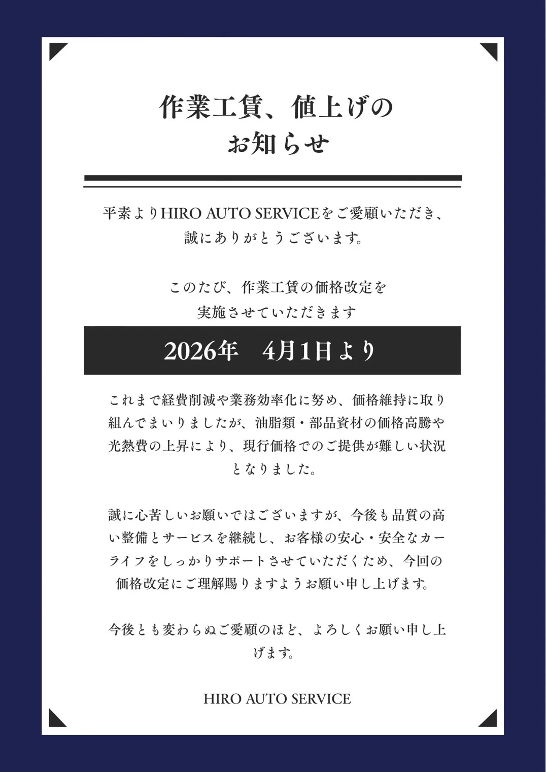 価格改定のお知らせ